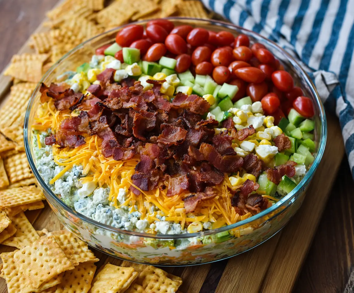 This fun 7 Layer Cobb Salad Dip brings together all your salad favorites in a dip form! With layers of creamy goodness, crisp veggies, and tasty toppings, it’s a hit at any gathering.