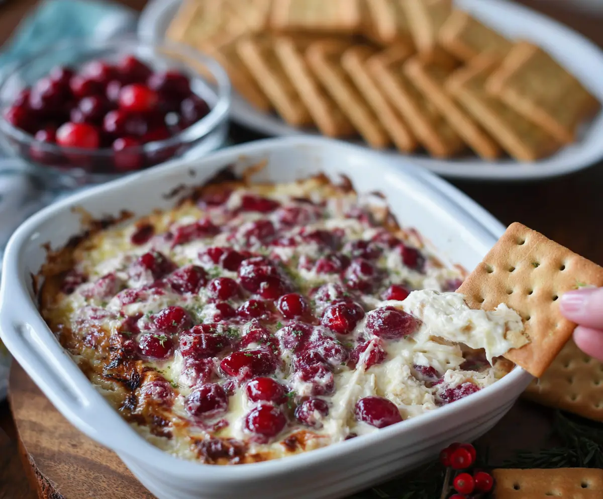 This Baked Cranberry Cream Cheese Dip is a sweet and creamy delight! With a buttery crust and tangy cranberry topping, it’s perfect for sharing at parties or cozy gatherings.