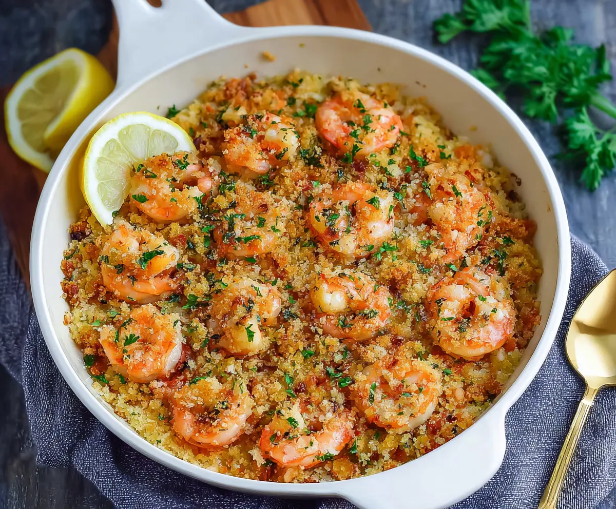 This Baked Shrimp Scampi is a real crowd-pleaser! Juicy shrimp are mixed with garlic, butter, and spices, then topped with crispy breadcrumbs for that perfect crunch.