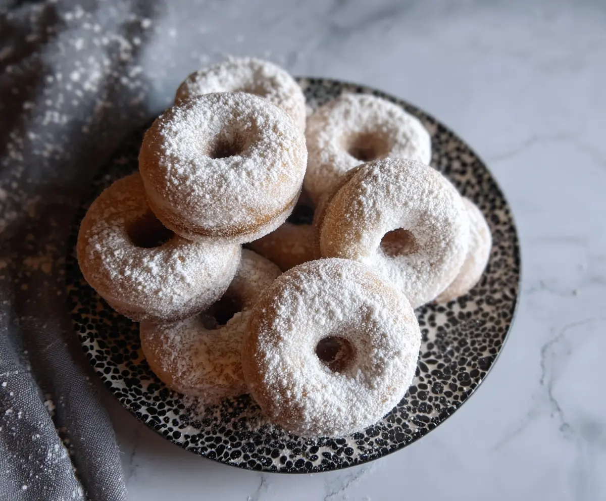 After they have cooled, generously dust the donuts with powdered sugar until they’re beautifully coated. Don’t be shy—this is what makes them deliciously sweet!