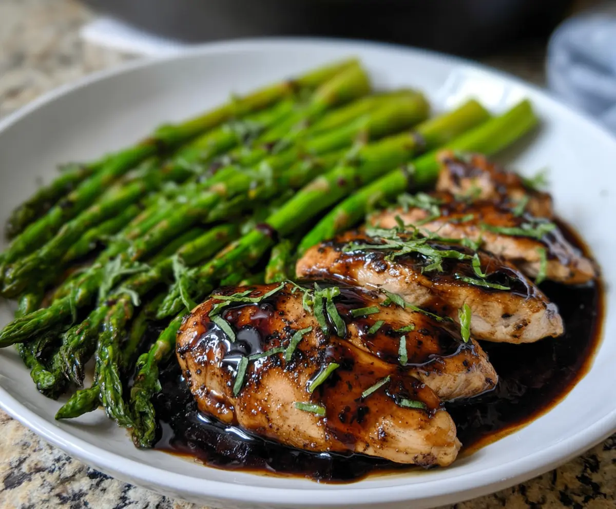 Sprinkle the chopped fresh basil or parsley over the chicken for a pop of color and freshness. Serve warm, and enjoy your delicious Balsamic Chicken with Asparagus!