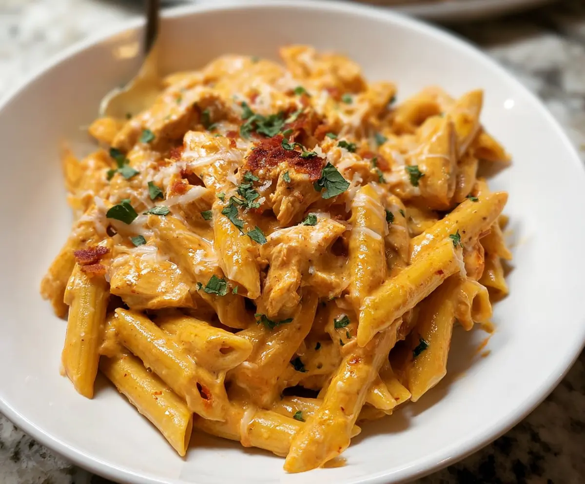 Enjoy this creamy, spicy pasta that perfectly combines the rich flavors of Alfredo with the zesty heat of buffalo chicken!