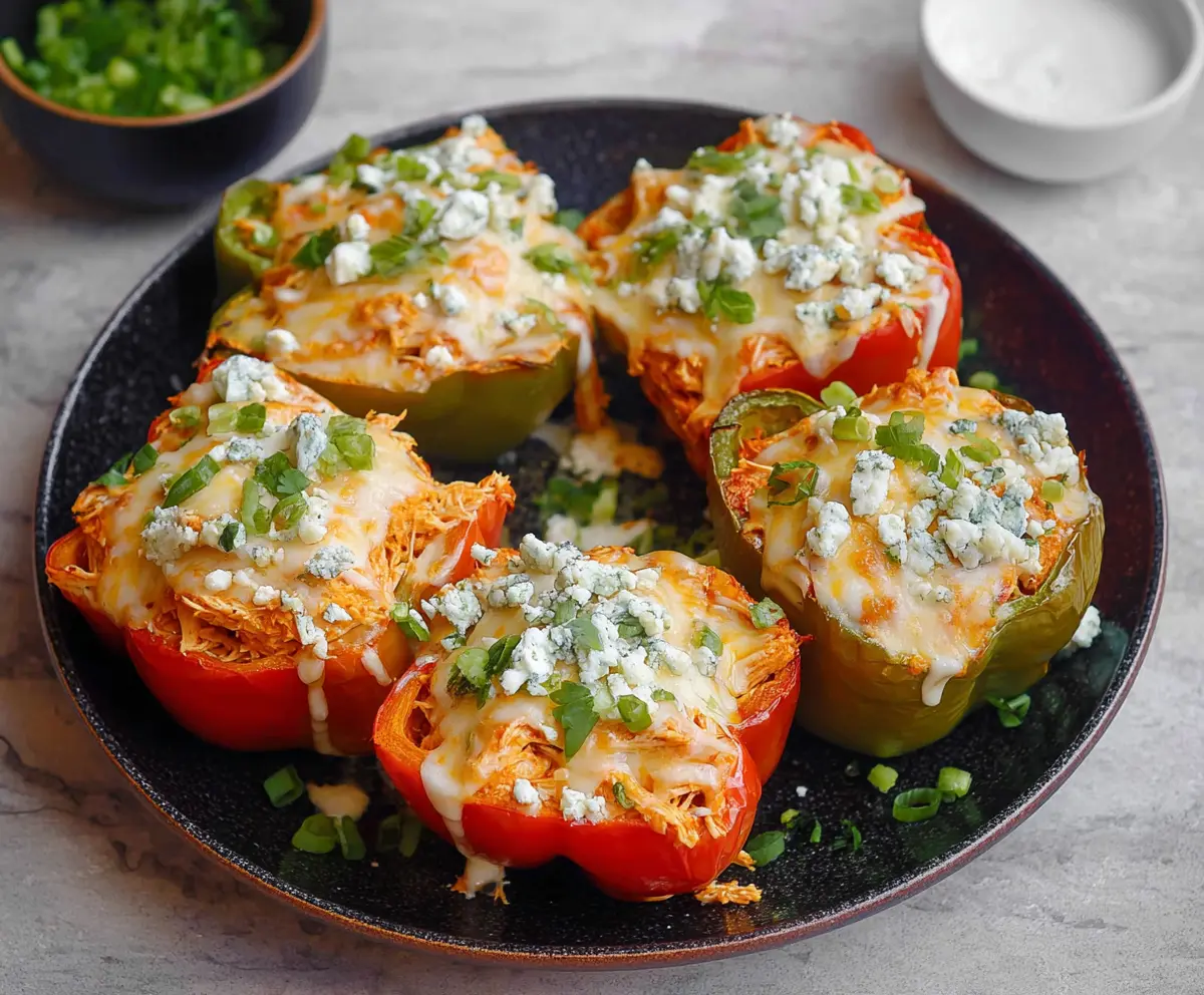 These Buffalo Chicken Stuffed Peppers are a fun twist on a classic! Filled with spicy shredded chicken and creamy cheese, they’re bursting with flavor. Plus, the colorful peppers make the dish eye-catching!