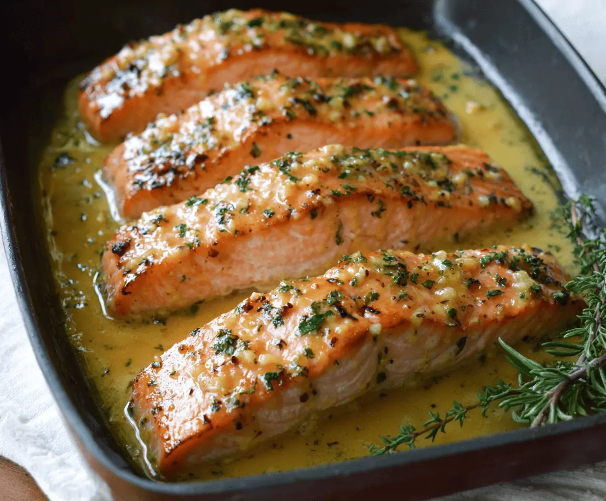 This recipe yields tender, flavorful salmon with a luscious buttery honey mustard glaze that will surely impress. Enjoy your meal!
