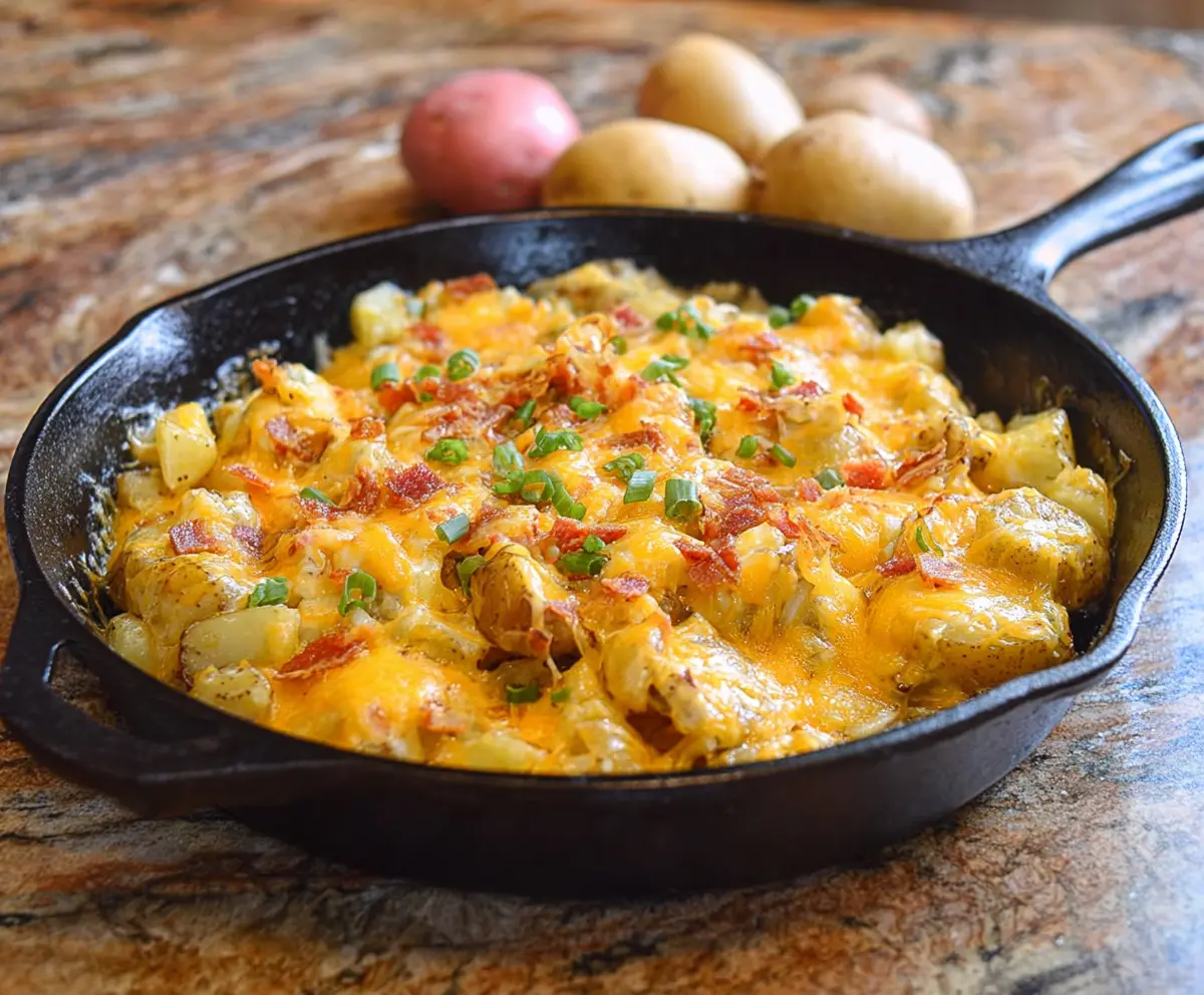 This Cheesy Potato Skillet is a warm and hearty dish that combines crispy potatoes with gooey cheese. Perfect for a cozy meal or a delicious side!