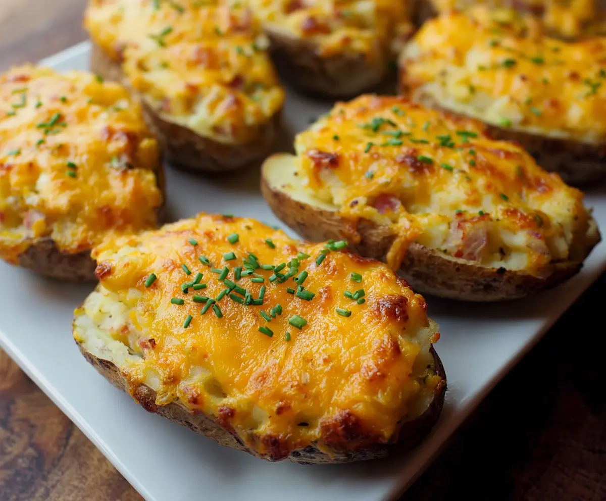 These Cheesy Twice Baked Potatoes are a comforting side dish that everyone loves! They’re packed with creamy cheese and buttery goodness, perfect for any meal.