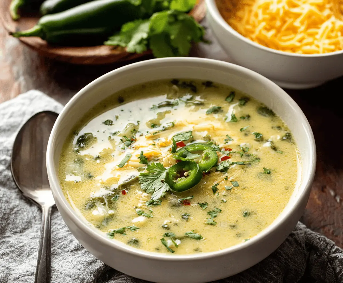 Your wonderfully creamy, cheesy Chile Relleno Soup is ready to warm you up, bringing a bit of spicy comfort and joy to your meal!🌶️