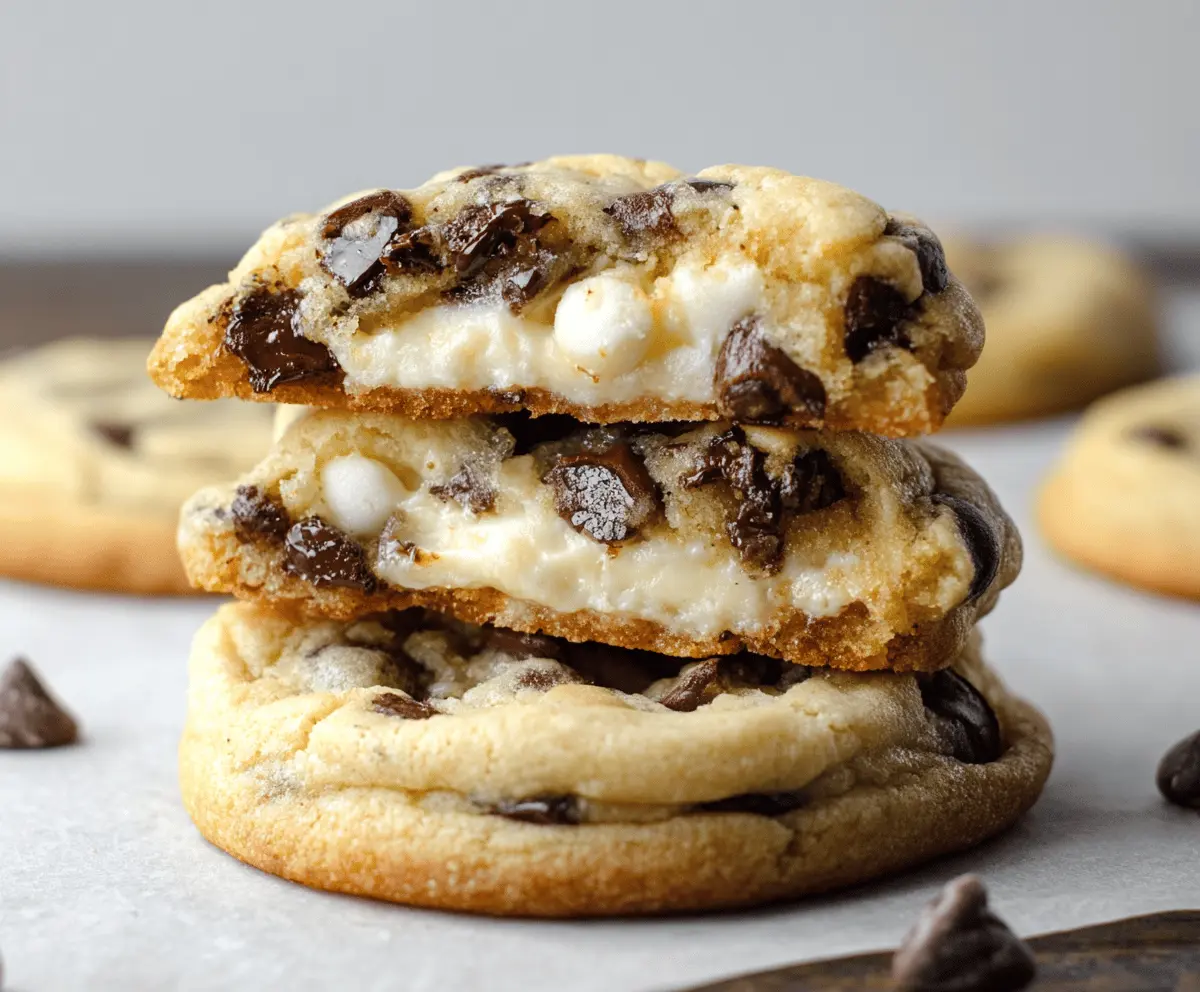 These Chocolate Chip Cheesecake Cookies are a yummy treat! They combine creamy cheesecake filling with soft cookie dough and chocolate chips. It’s like holding dessert in your hand!