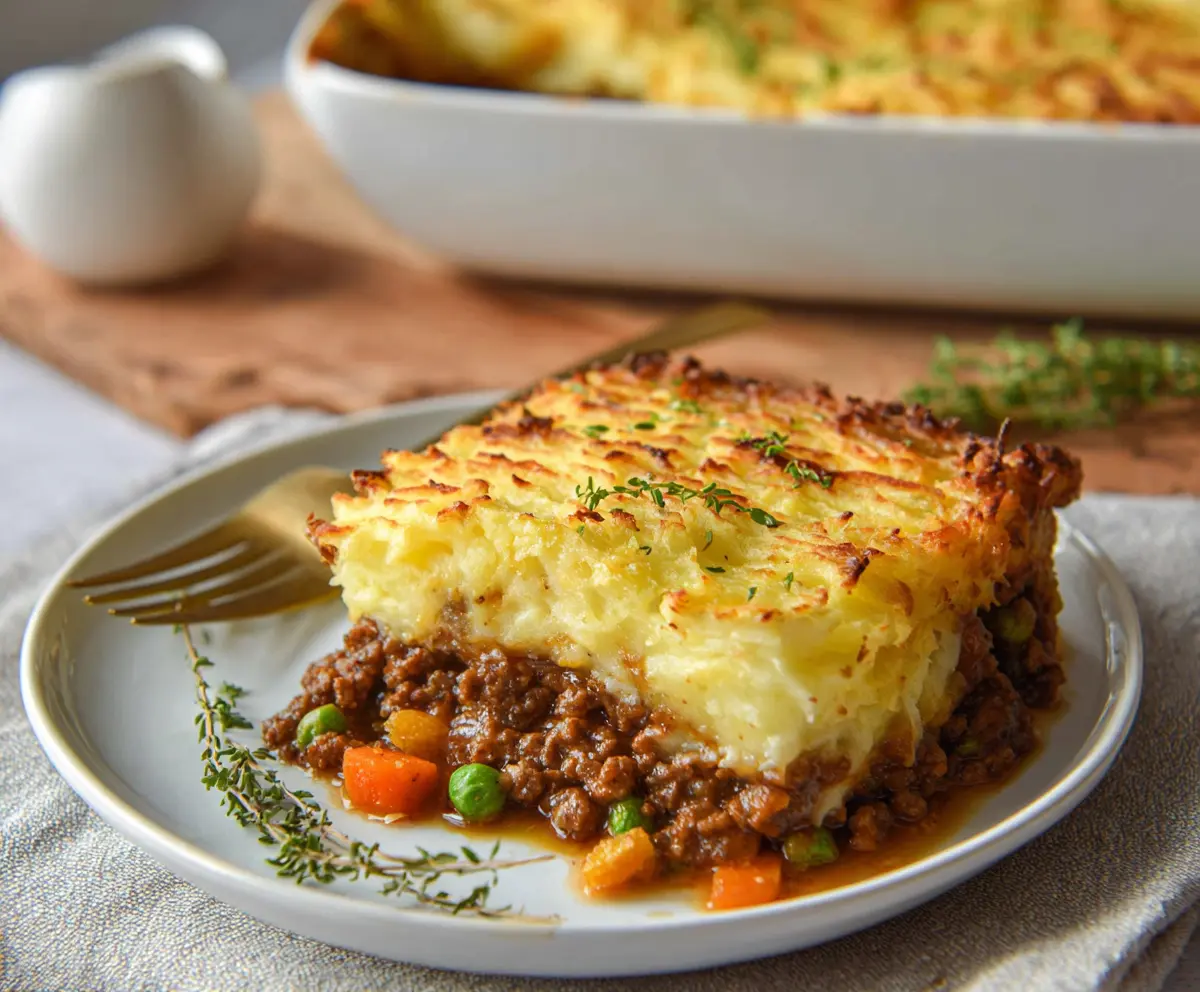 Once it’s out of the oven, let it cool for a minute. If you’d like, garnish it with some fresh thyme or parsley for a bit of color. Serve hot and enjoy your hearty Cottage Pie!