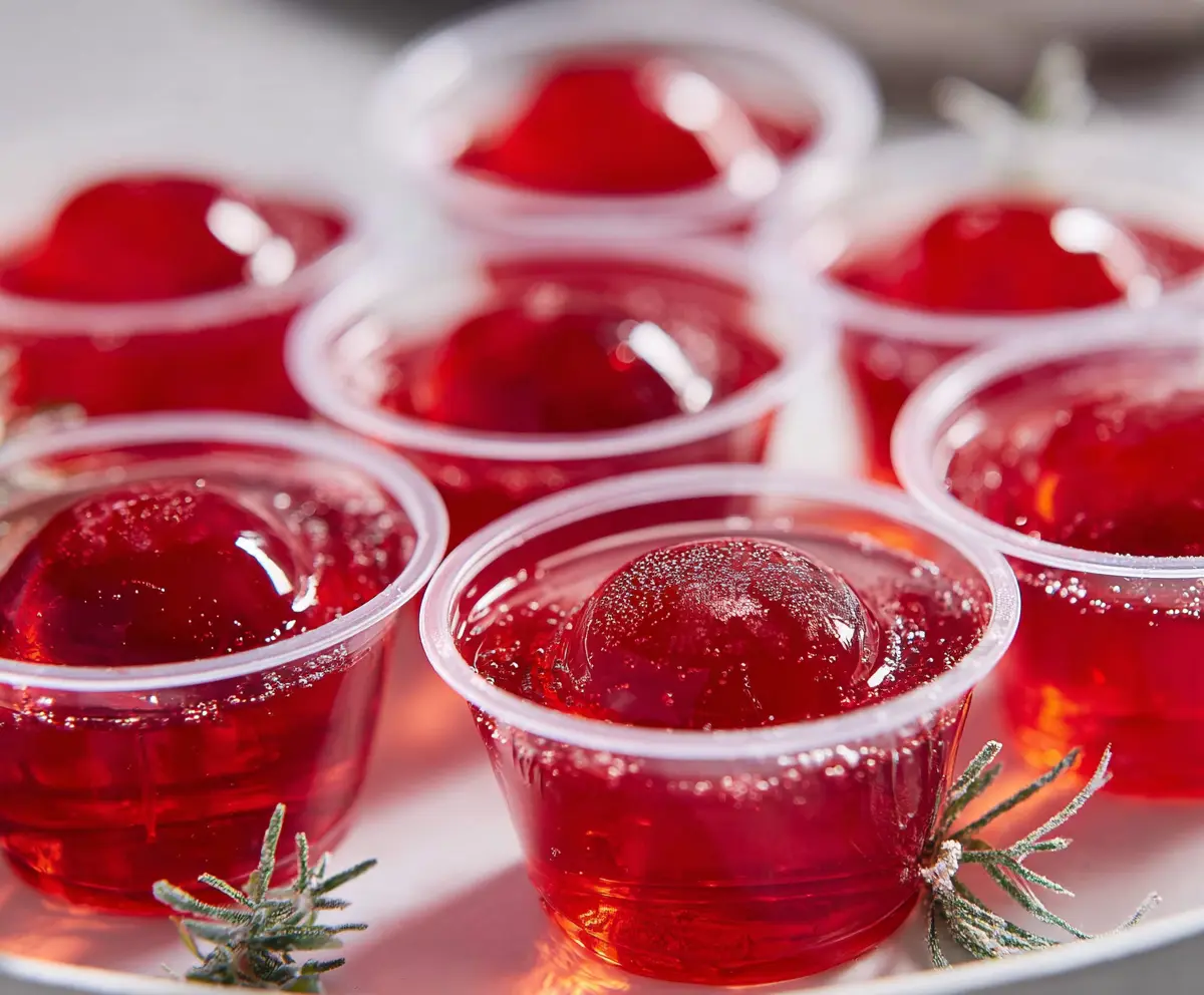 Garnish each jello shot with fresh cranberries and a sprig of rosemary for a festive presentation. It looks great and adds a bit of flavor!