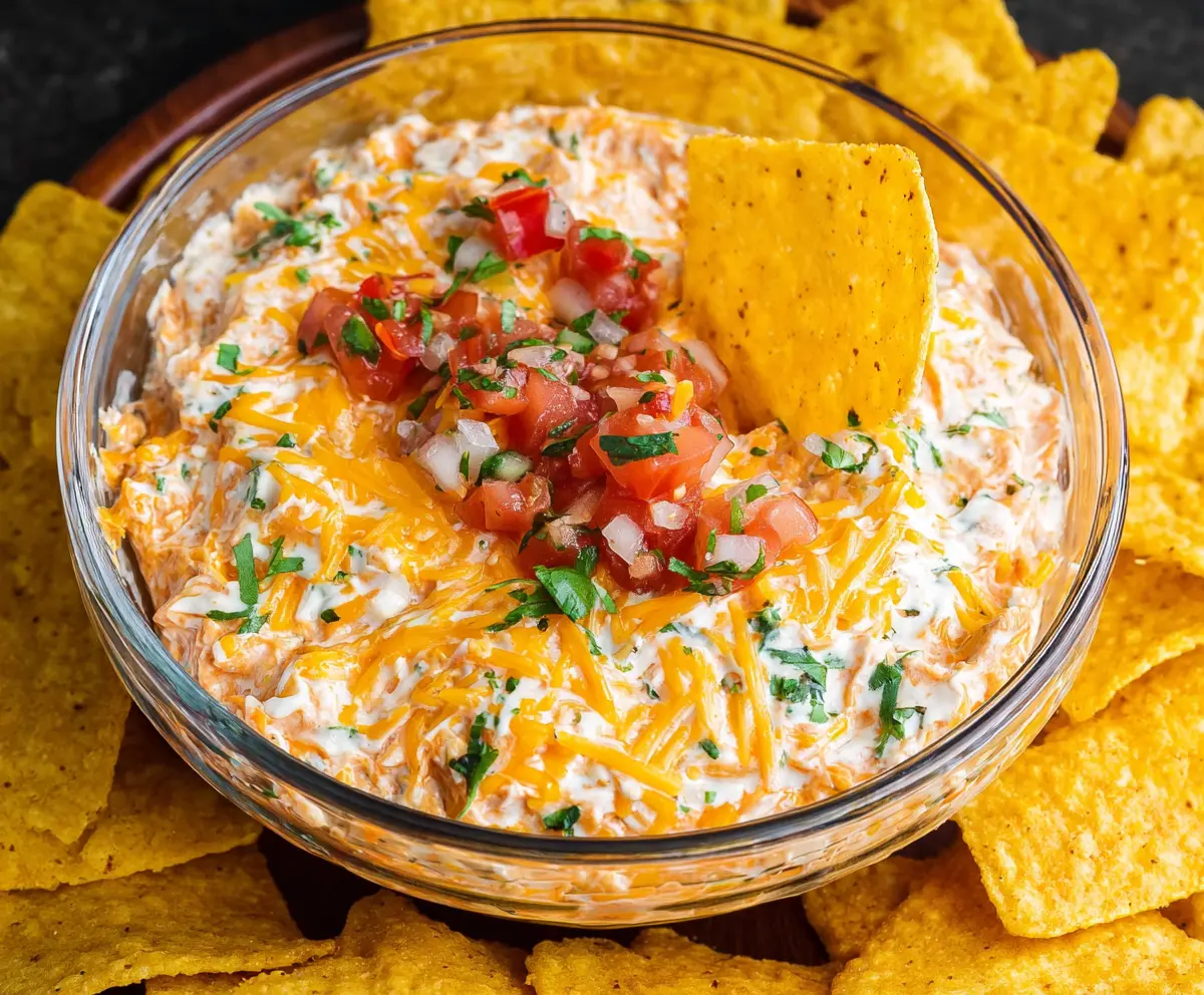 Grab some tortilla chips and serve the dip right away! If you prefer, you can also refrigerate the dip for a little while first to let the flavors marry. Either way, it’s sure to be a hit!