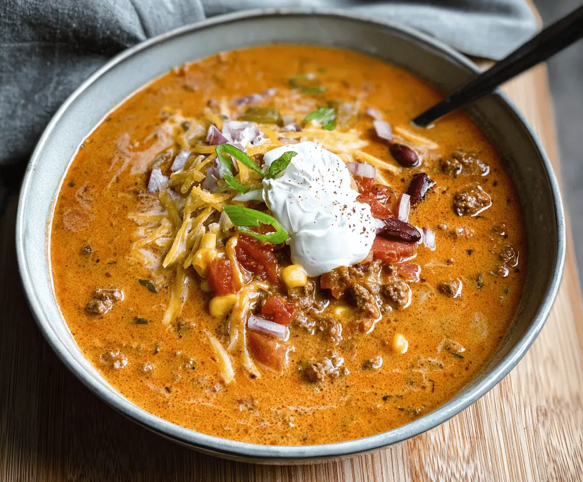 This creamy beef taco soup is a warm hug in a bowl! Packed with ground beef, beans, and a splash of cream, it’s super easy to make and perfect for chilly nights.
