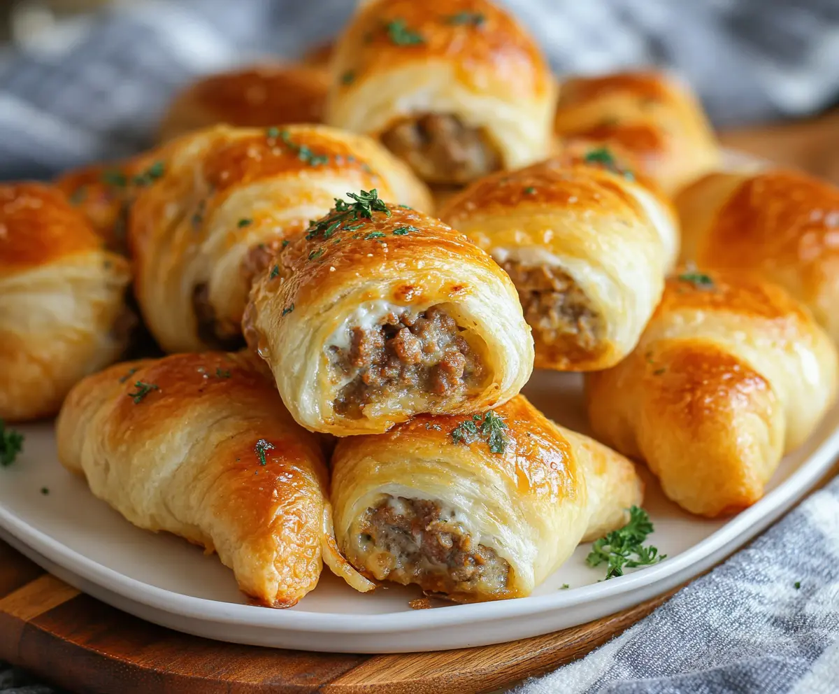 These creamy sausage-stuffed crescent rolls are perfect as an appetizer, snack, or even a breakfast treat! Enjoy every bite!