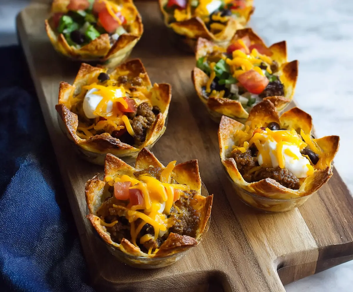 Crunchy nacho cups are a fun and tasty snack! Think of crispy tortilla cups filled with cheese, beans, and tasty toppings just waiting for you to dive in!