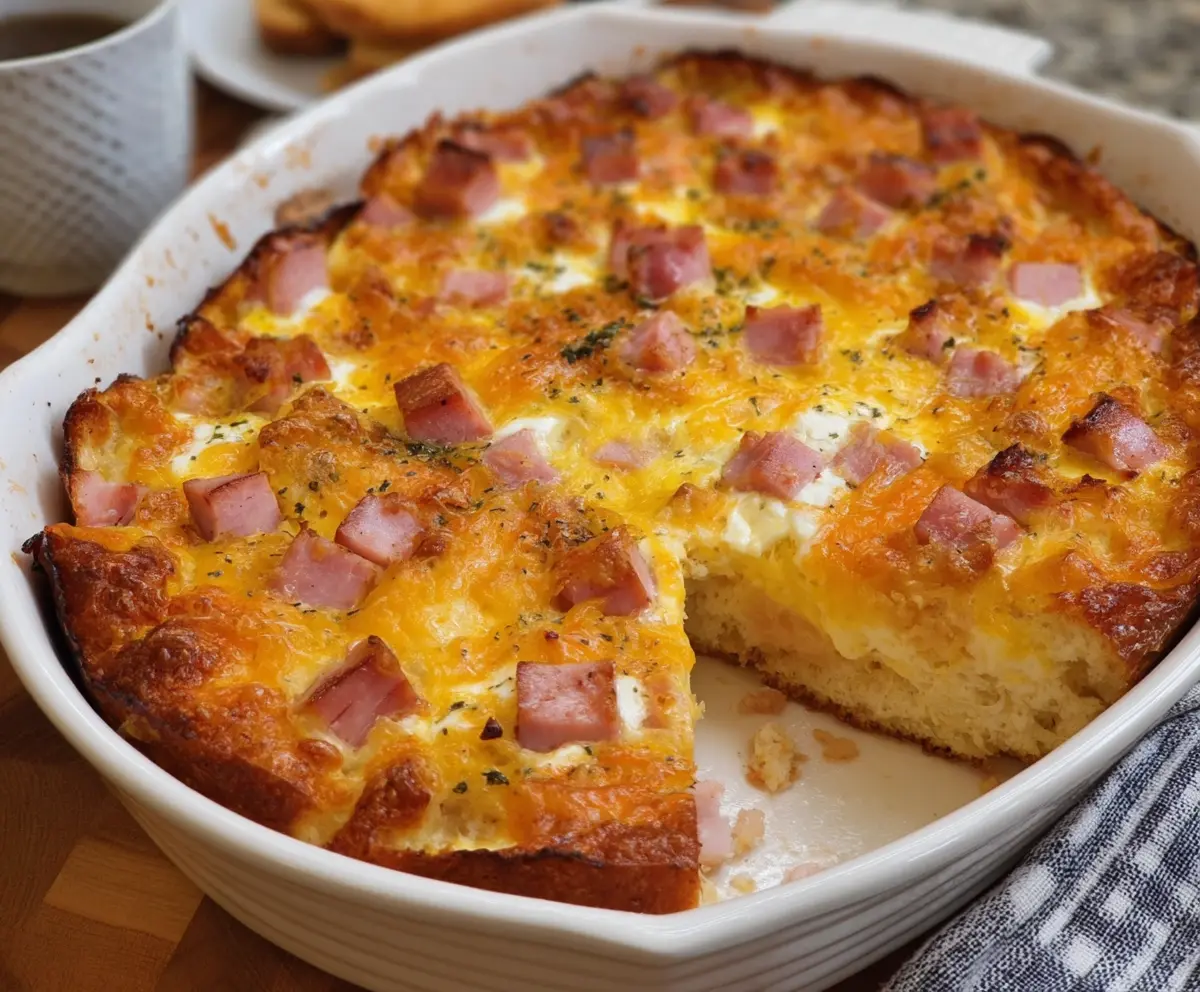 - After adding the cubed bread, ham, and cheese to the egg mixture, let it sit for about 10-15 minutes. This allows the bread to absorb the liquid.