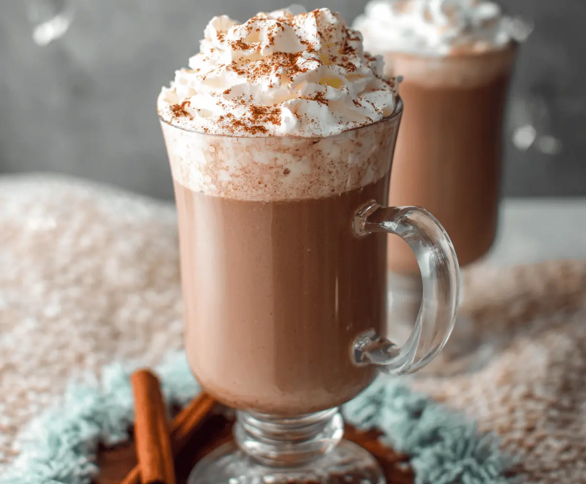 This Eggnog Hot Chocolate is the perfect cozy treat for chilly days! It’s a warm drink that combines rich hot chocolate with creamy eggnog, topped with whipped cream and a sprinkle of nutmeg.