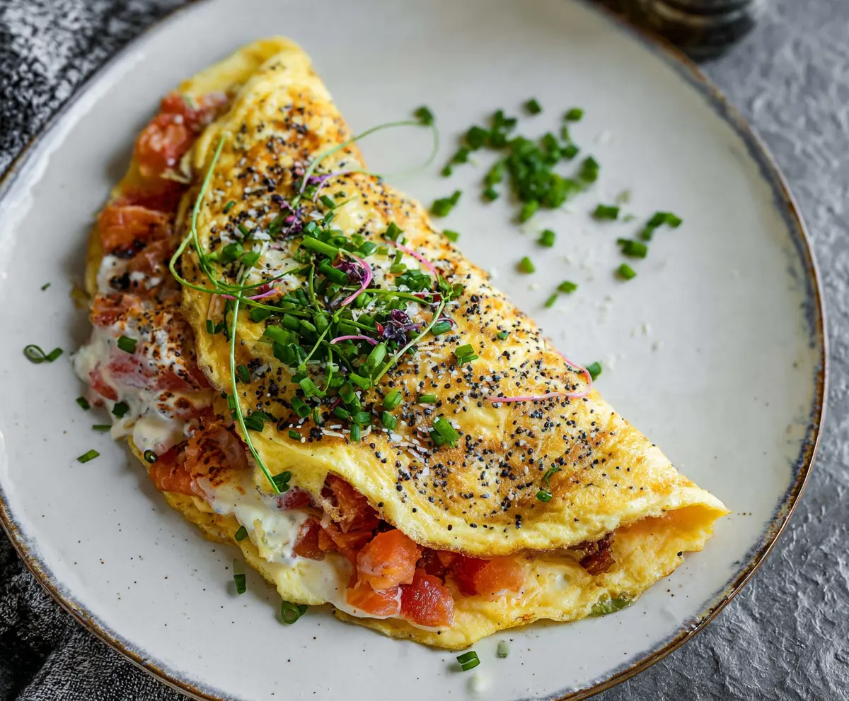 Making this omelet is a breeze! Just whip up some eggs, add in cream cheese, and sprinkle the bagel toppings. It’s an easy way to start your day with a smile and full belly!