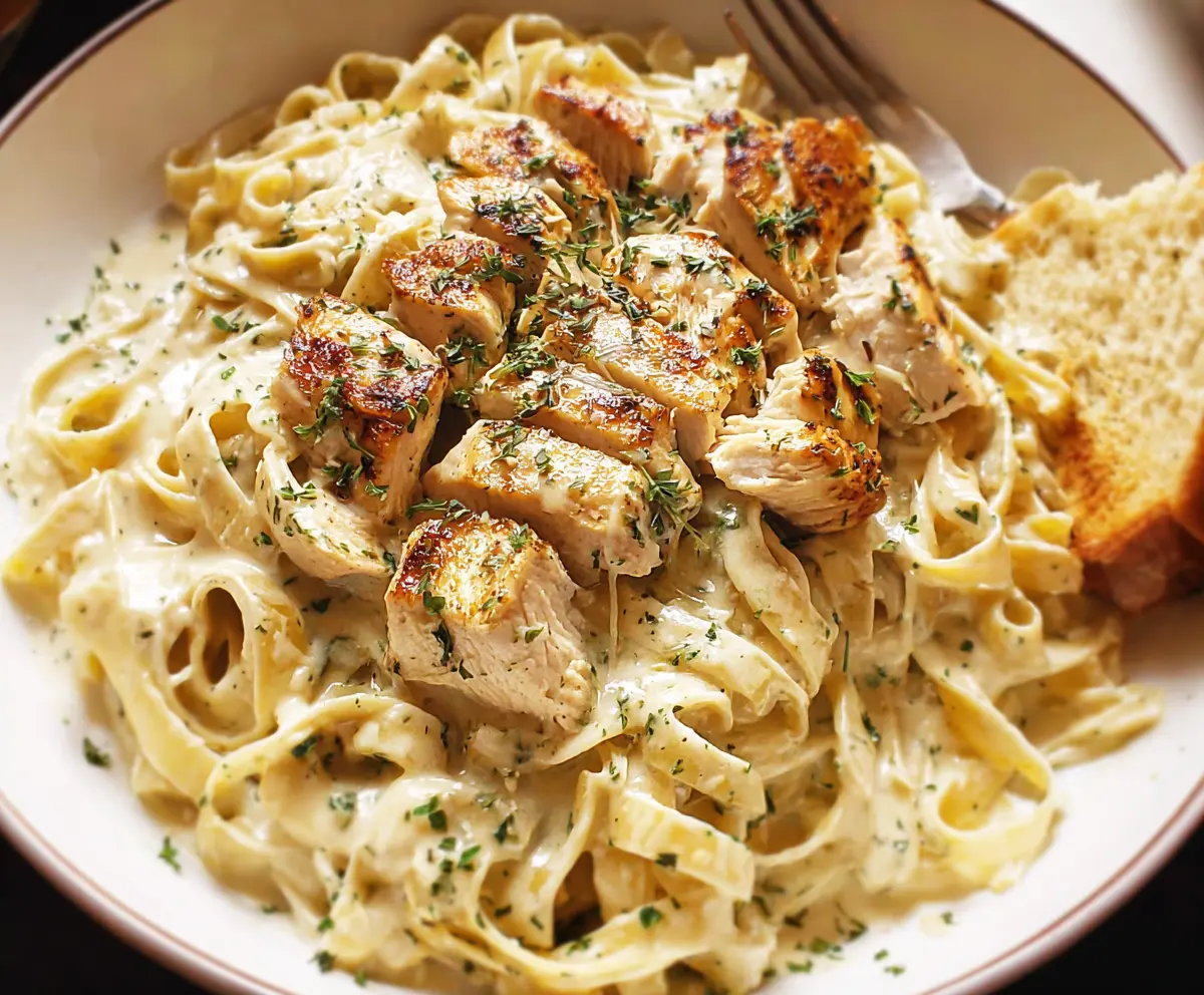 This creamy Fettuccine Alfredo with chicken is a comforting dish that warms your heart. With pasta coated in rich Alfredo sauce and tender chicken, it’s a classic favorite!