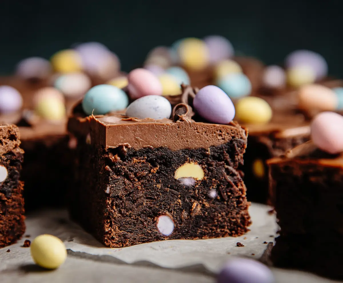 Let the frosting set either at room temperature or pop it in the fridge for a bit to speed things up. Once set, cut your brownies into squares and serve them up. Enjoy your rich, fudgy Frosted Mini Egg Easter Brownies!