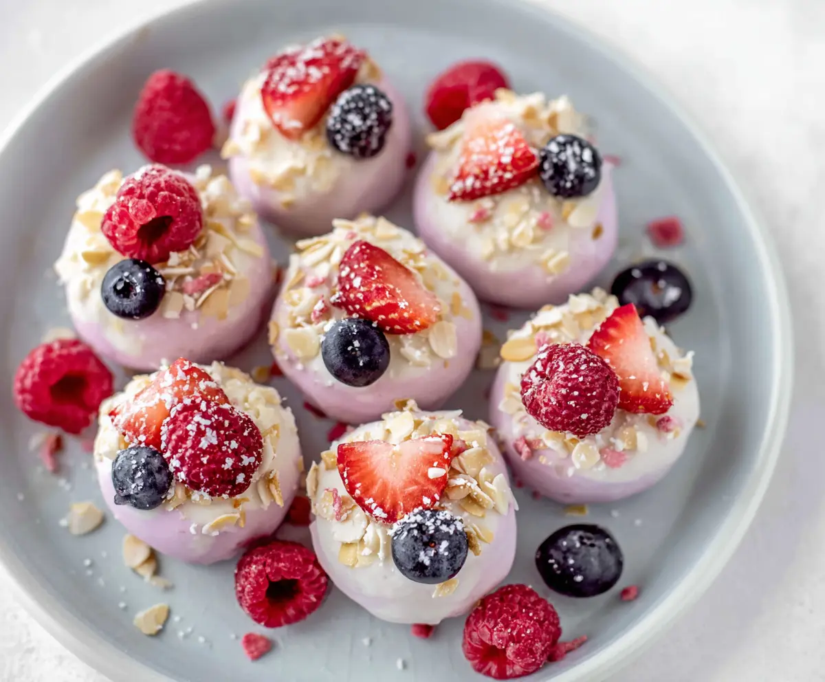 If you want to make them look extra special, place one or two frozen berries on top of each bite as a garnish. It adds a nice pop of color and flavor!