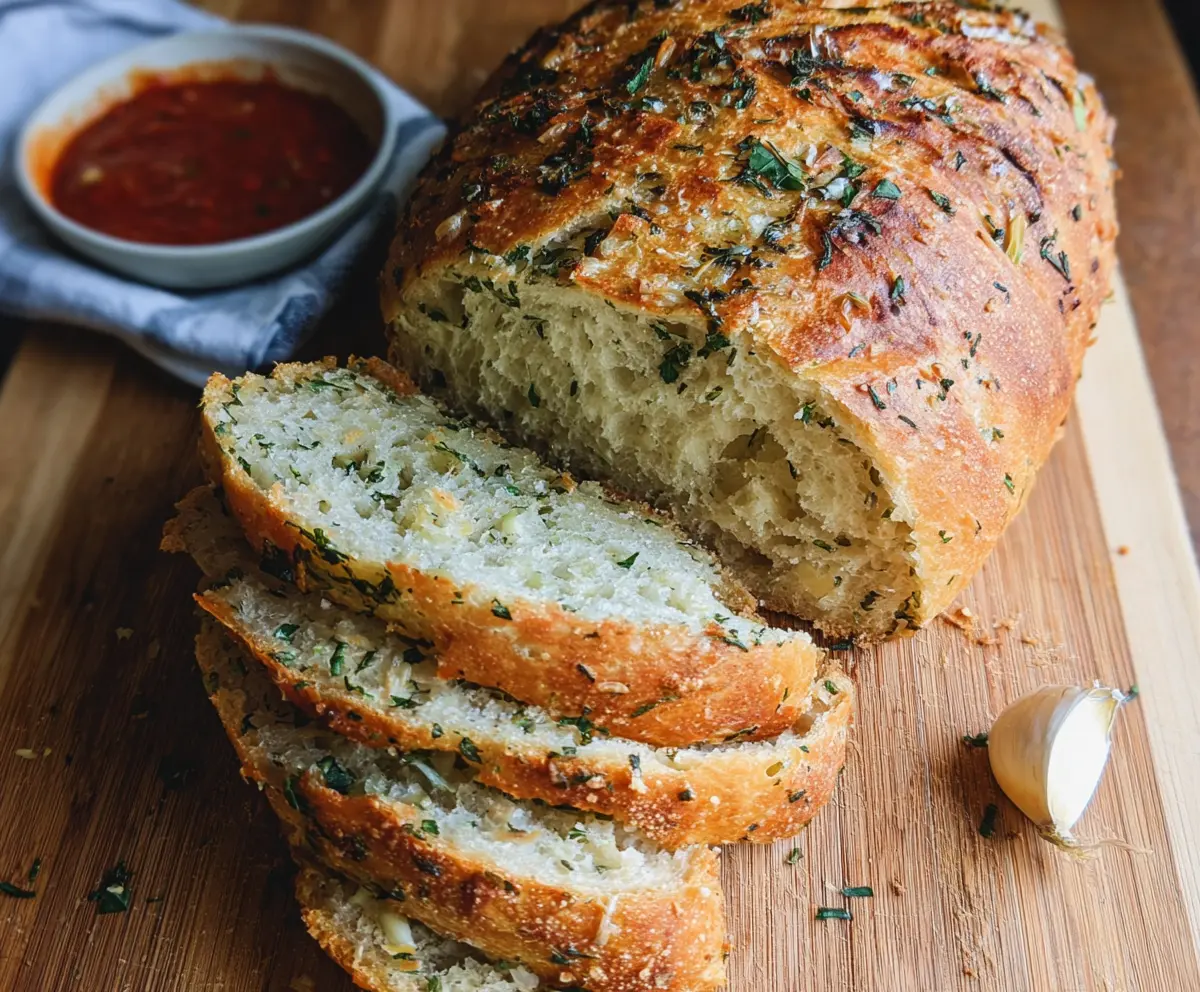 This Garlic and Herb Sourdough Bread is a tasty treat that’s crunchy on the outside and soft on the inside. With the flavors of garlic and fresh herbs, it’s hard to resist!