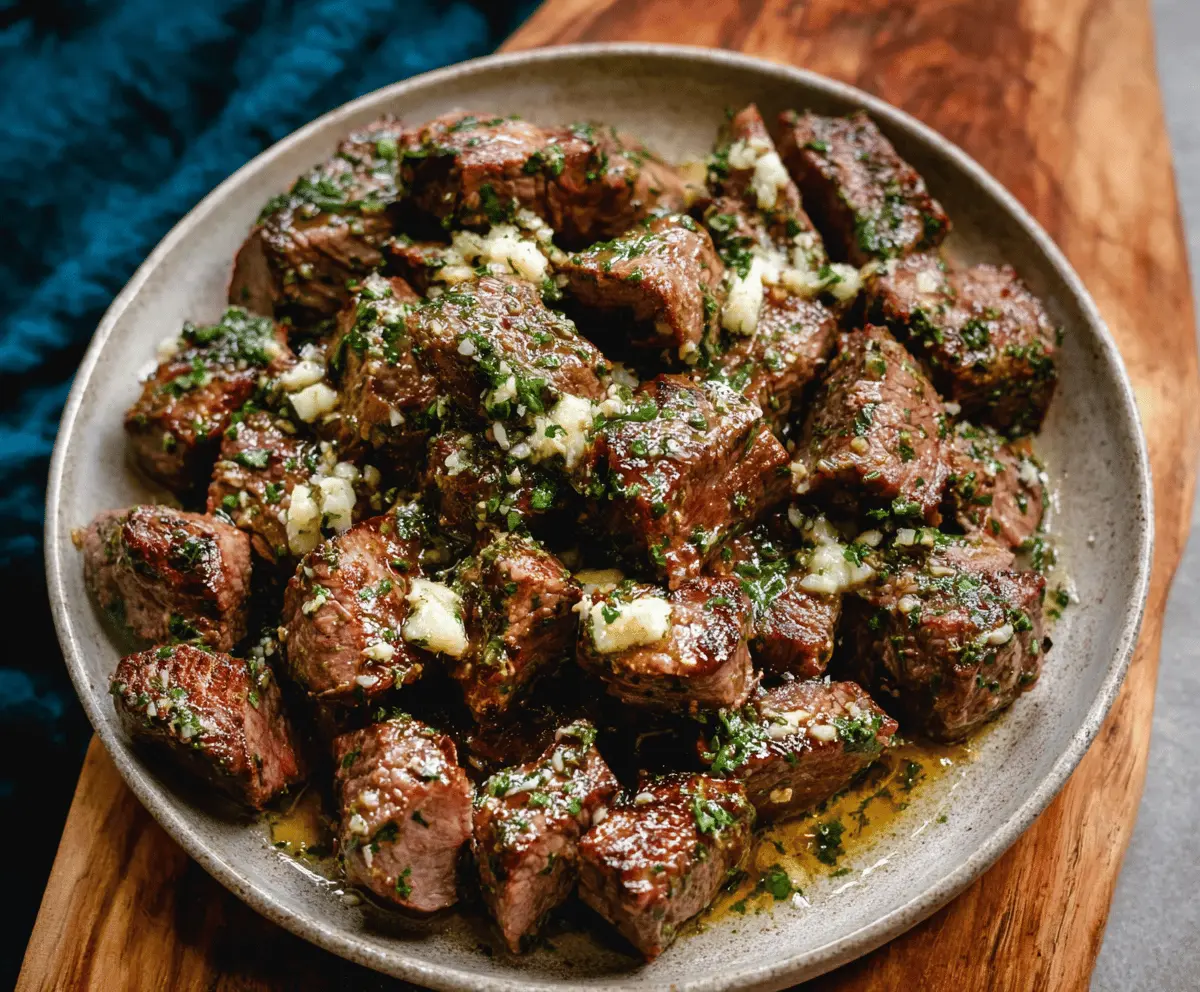 Transfer the garlic butter steak bites to a serving bowl. If desired, garnish with fresh thyme sprigs. Serve immediately and enjoy these tender, garlicky delights as a perfect appetizer or main dish!