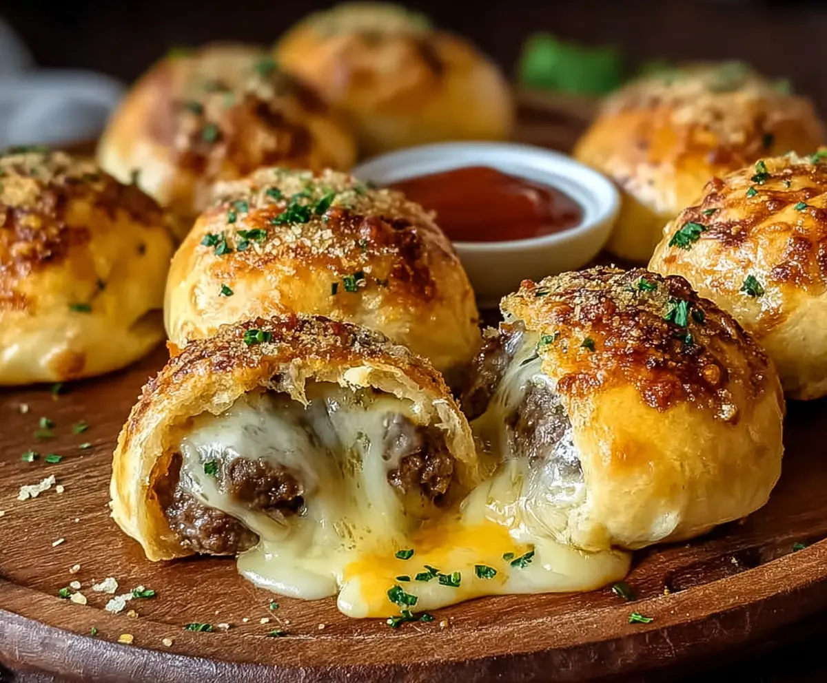 These Garlic Parmesan Cheeseburger Bombs make a delicious, cheesy, savory treat perfect for any occasion! Enjoy every bite!