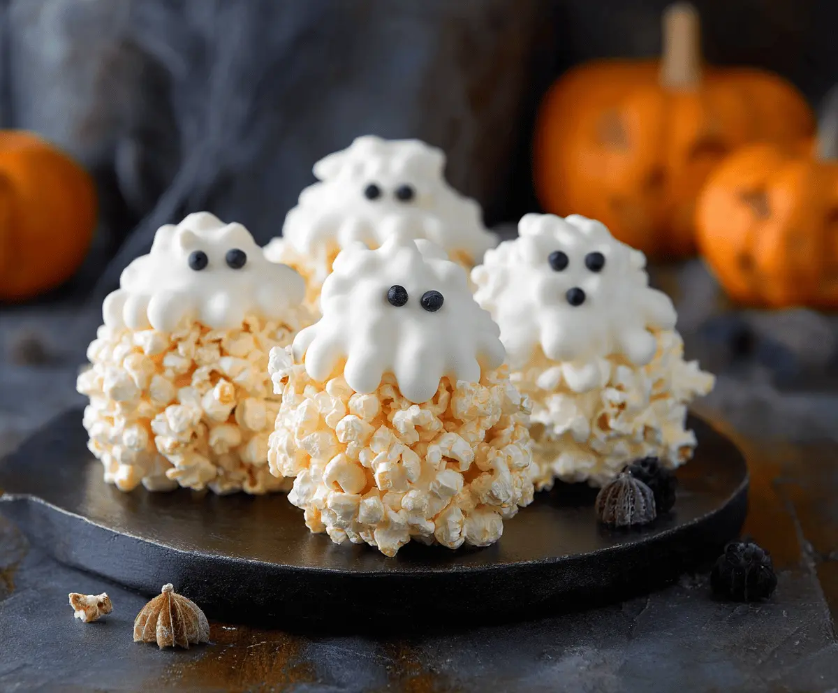 Your Ghost Popcorn Balls are now ready! These creepy but cute treats are perfect for Halloween parties or just a fun family snack. Enjoy your festive creation!