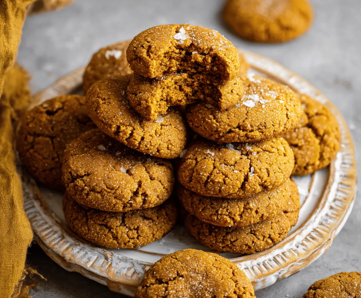 Delicious gluten-free pumpkin cookies with warm spices and a soft, chewy texture on a rustic plate, perfect for fall treats.