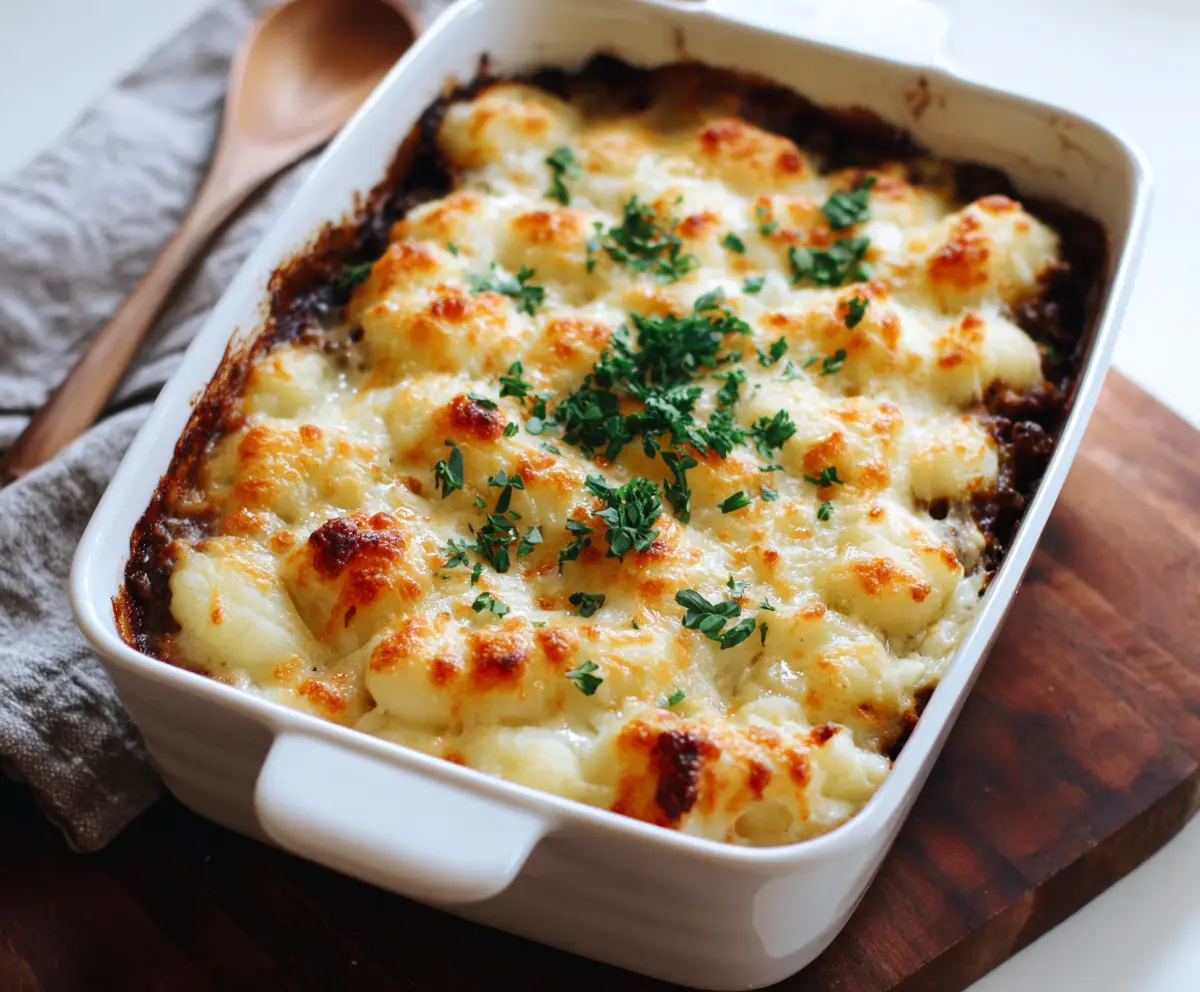 This Gnocchi Shepherd’s Pie combines soft, pillowy gnocchi with hearty beef and veggies, topped with a golden, cheesy crust. It’s like a warm hug on a plate!
