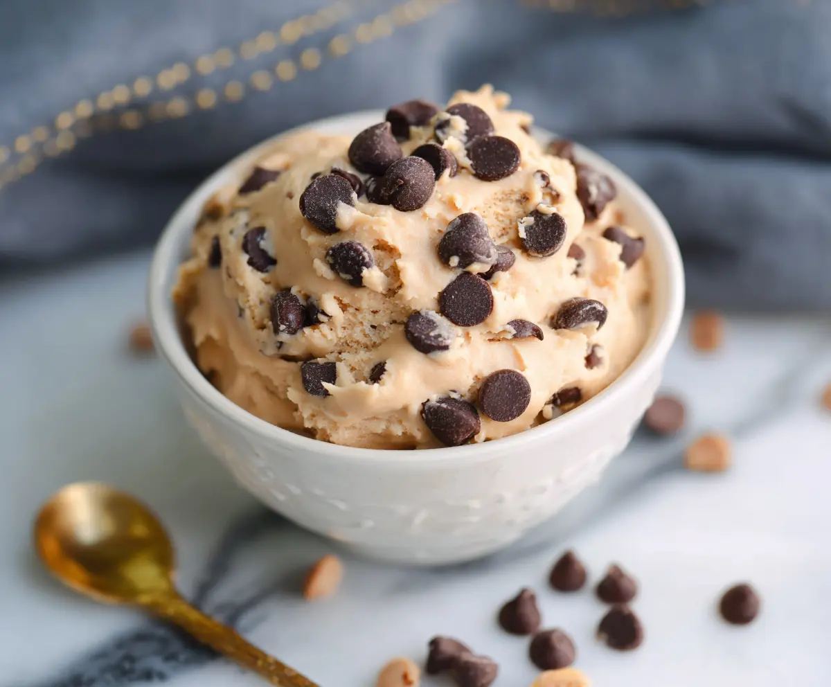 Now you have a delicious high-protein snack or healthy dessert! This cookie dough is safe to eat raw, so dig in and savor the blend of Greek yogurt, creamy peanut butter, and sweet chocolate chips. Enjoy!