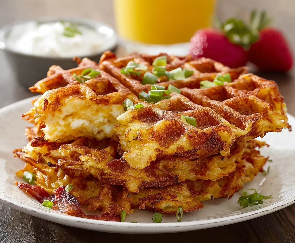 Enjoy your crispy, golden hash brown waffles, perfect for breakfast or brunch! They are sure to be a hit!