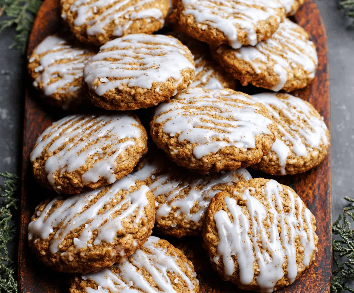 Enjoy your delicious, chewy Iced Gingerbread Oatmeal Cookies, filled with warm spices and topped with a delightful sweet icing!