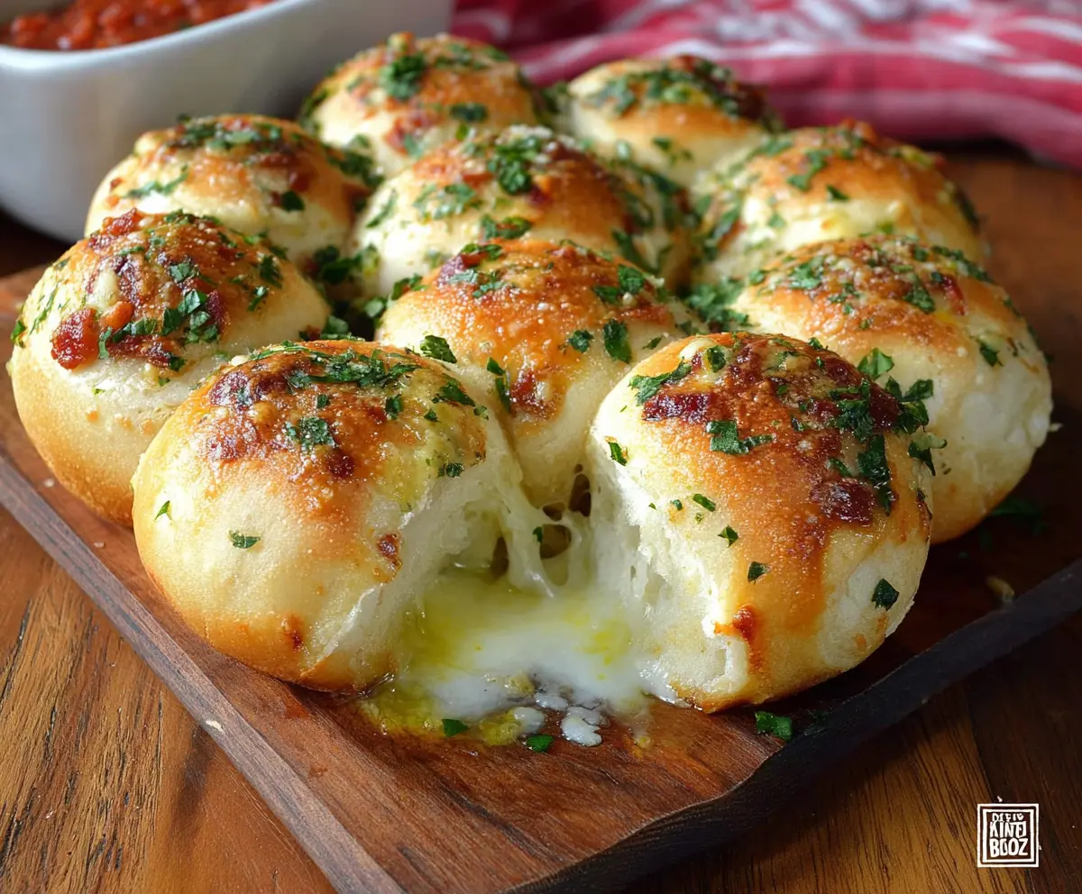 In a small bowl, mix the melted butter, minced garlic, chopped parsley, crushed red pepper flakes (if using), and a little salt and pepper. This will give your breakfast bombs an aromatic and delicious topping! Brush this mixture generously over each dough ball and sprinkle some grated Parmesan on top.