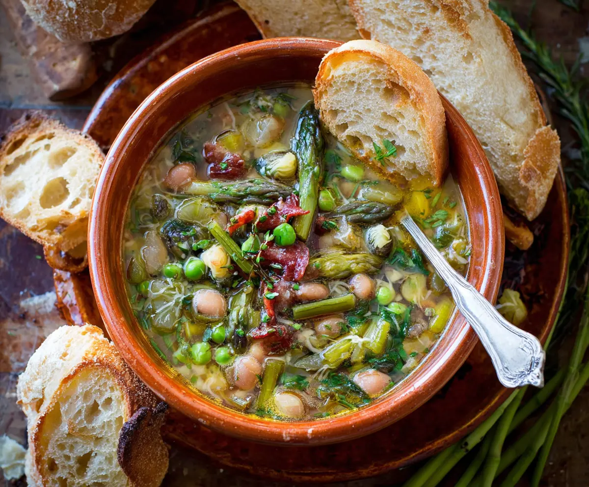 This Italian Spring Soup from Tuscany is a refreshing mix of fresh veggies like peas, beans, and greens in a light broth. Perfect for a sunny day, it bursts with flavor!