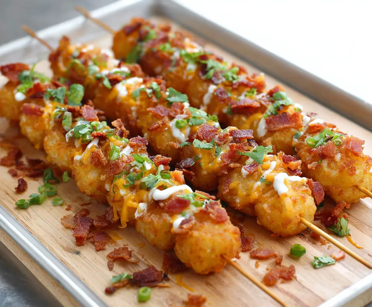 These Loaded Tater Tot Skewers are a fun twist on a classic snack! Imagine crispy tater tots piled high with tasty toppings like cheese, bacon, and a drizzle of ranch.