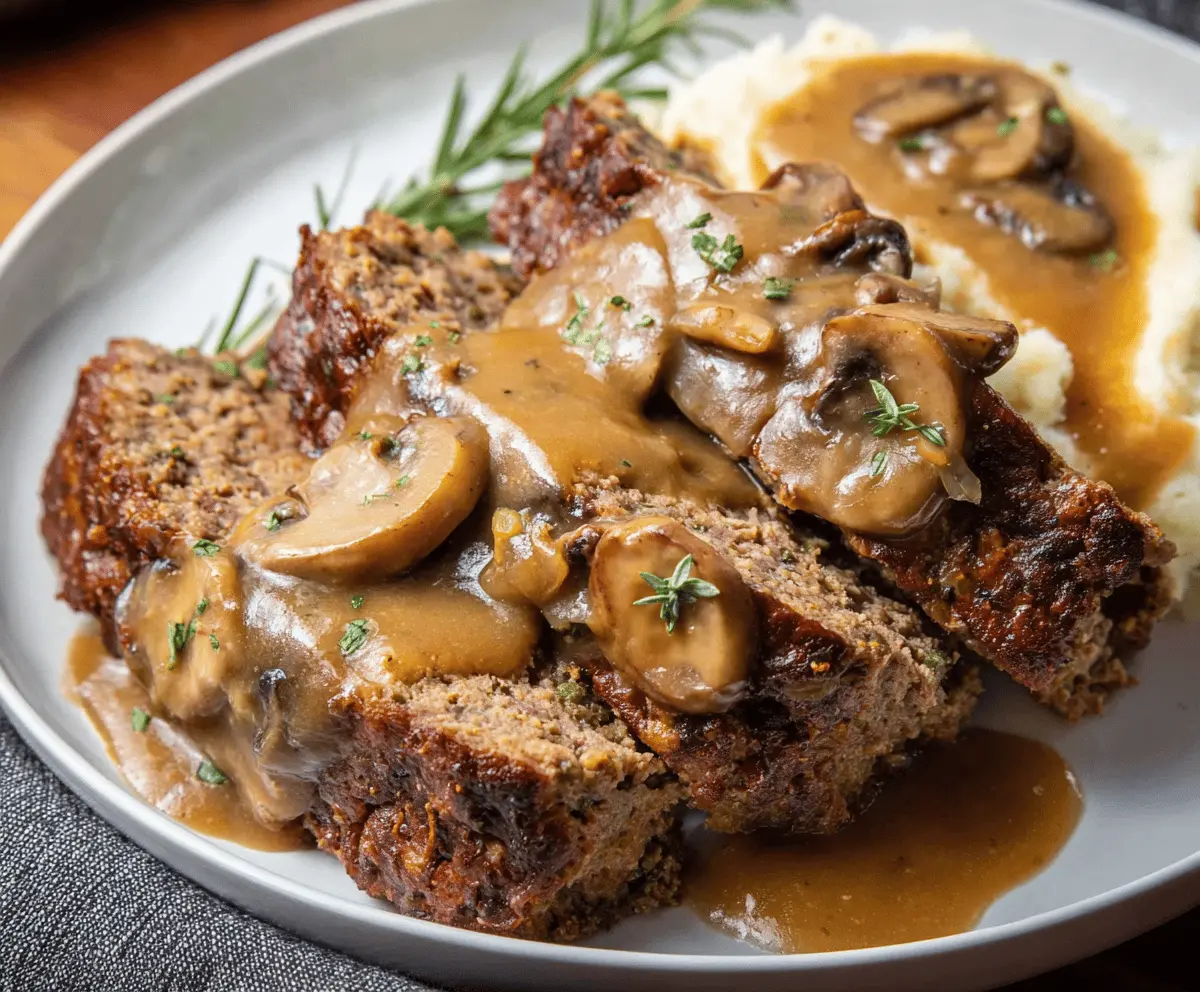 This meatloaf is juicy and hearty, topped with a rich mushroom gravy that adds a touch of comfort to your plate. It’s easy to make and perfect for family dinners!