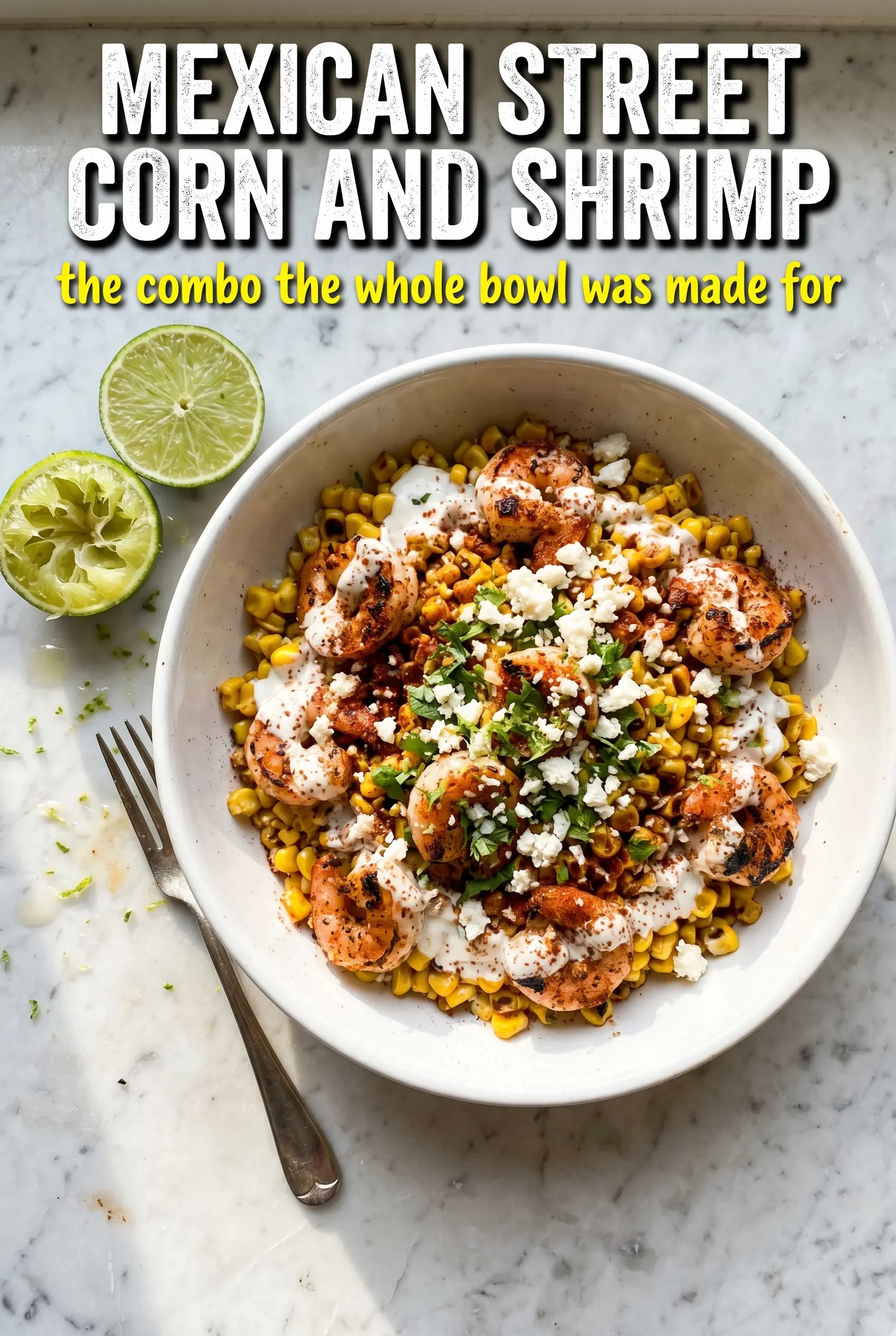 Save this Mexican Street Corn and Shrimp skillet for a fast dinner with charred corn, creamy lime sauce, and tender shrimp.