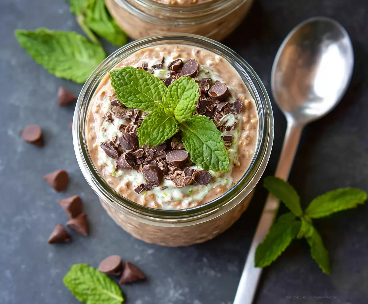 Top your oats with fresh mint leaves and a few extra chocolate chips for that extra touch of yum! You can enjoy them right from the jar or transfer them to a bowl if you prefer.