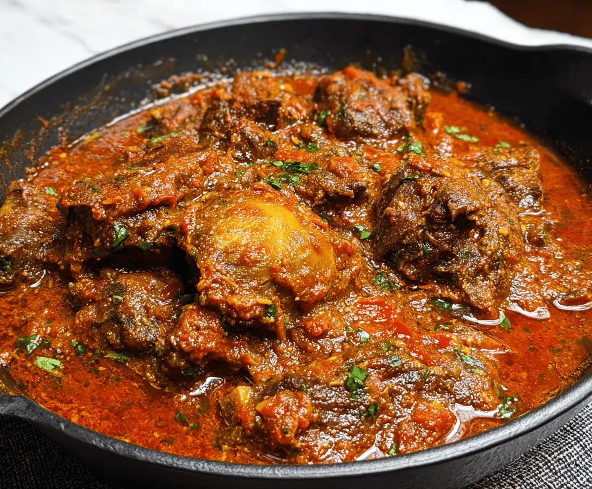 Nigerian Beef Stew is a rich, flavorful dish made with tender beef, tomatoes, and a mix of spices. It’s perfect for serving over rice or with some warm bread!
