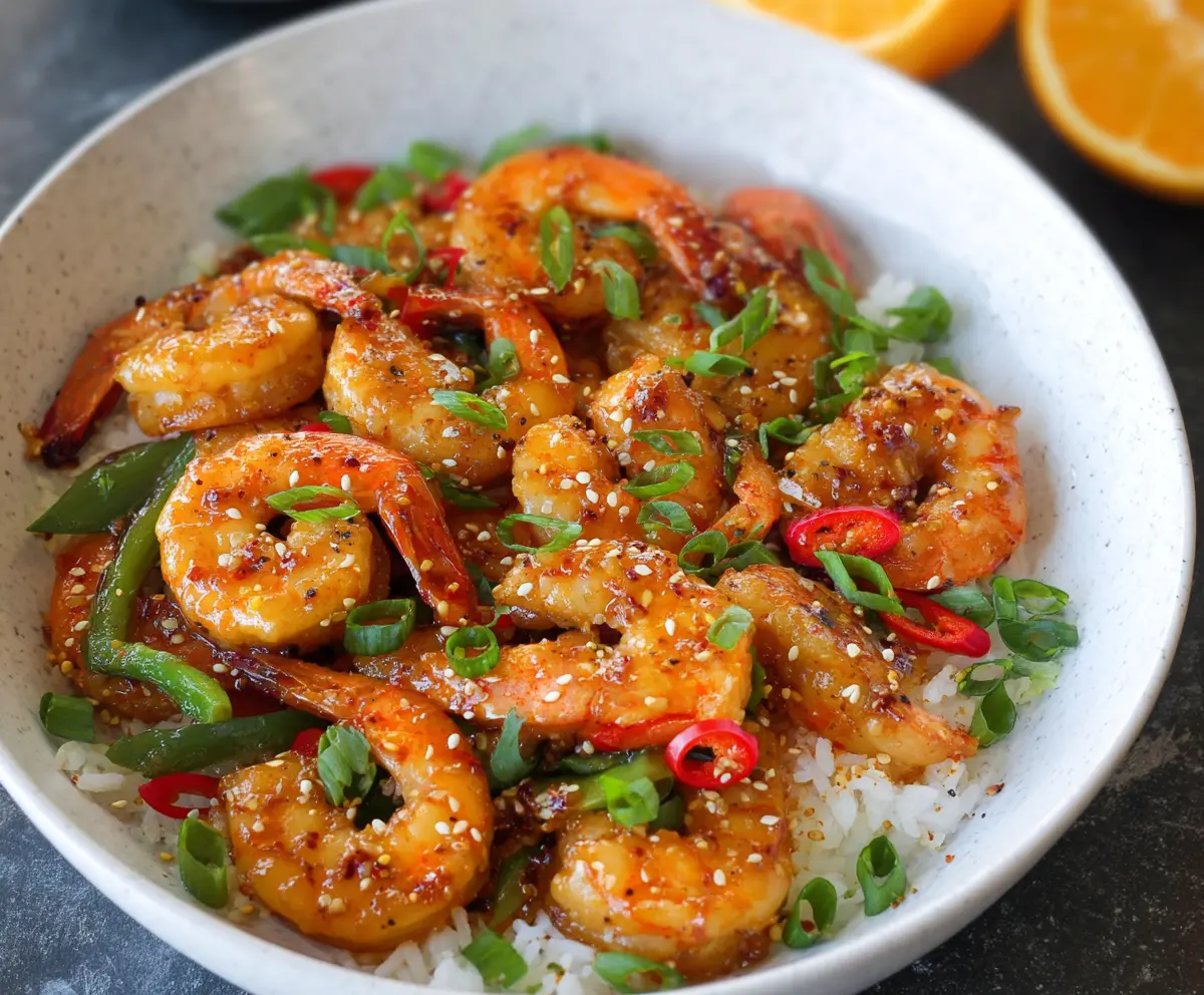 This Orange Chili Garlic Shrimp is a zesty and flavorful dish that brings together the bright taste of oranges with a spicy kick! The shrimp cook quickly, making it a perfect weeknight meal.