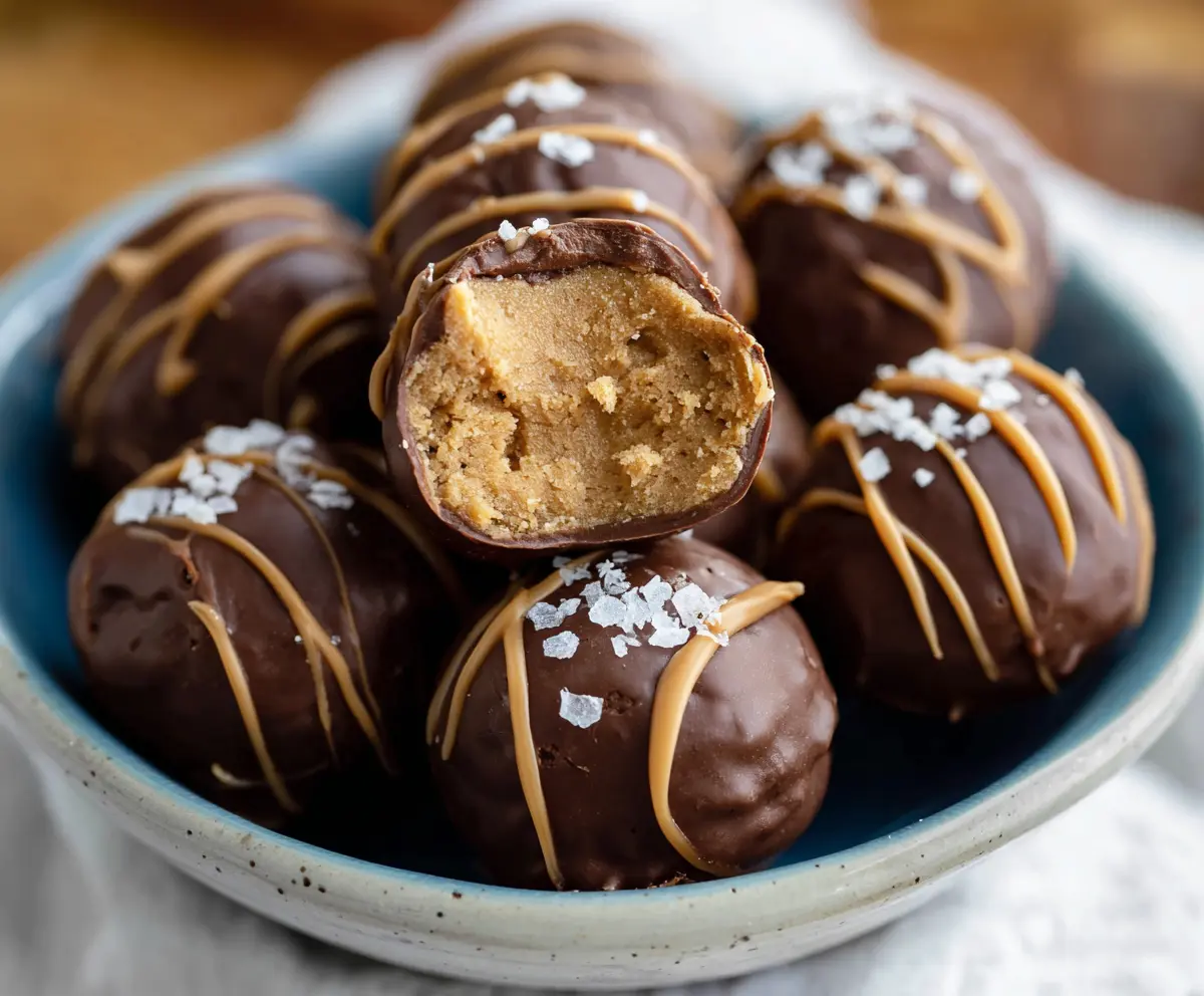 These Peanut Butter Balls are delightful snacks that combine a creamy center with a smooth chocolate coating. Enjoy the treat!