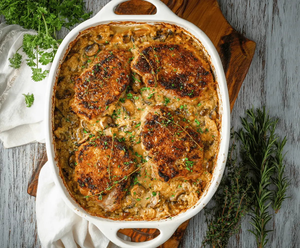 This Pork Chop Casserole is a cozy dish that combines tender pork chops with creamy goodness and tasty veggies. It’s like a warm hug on a plate!