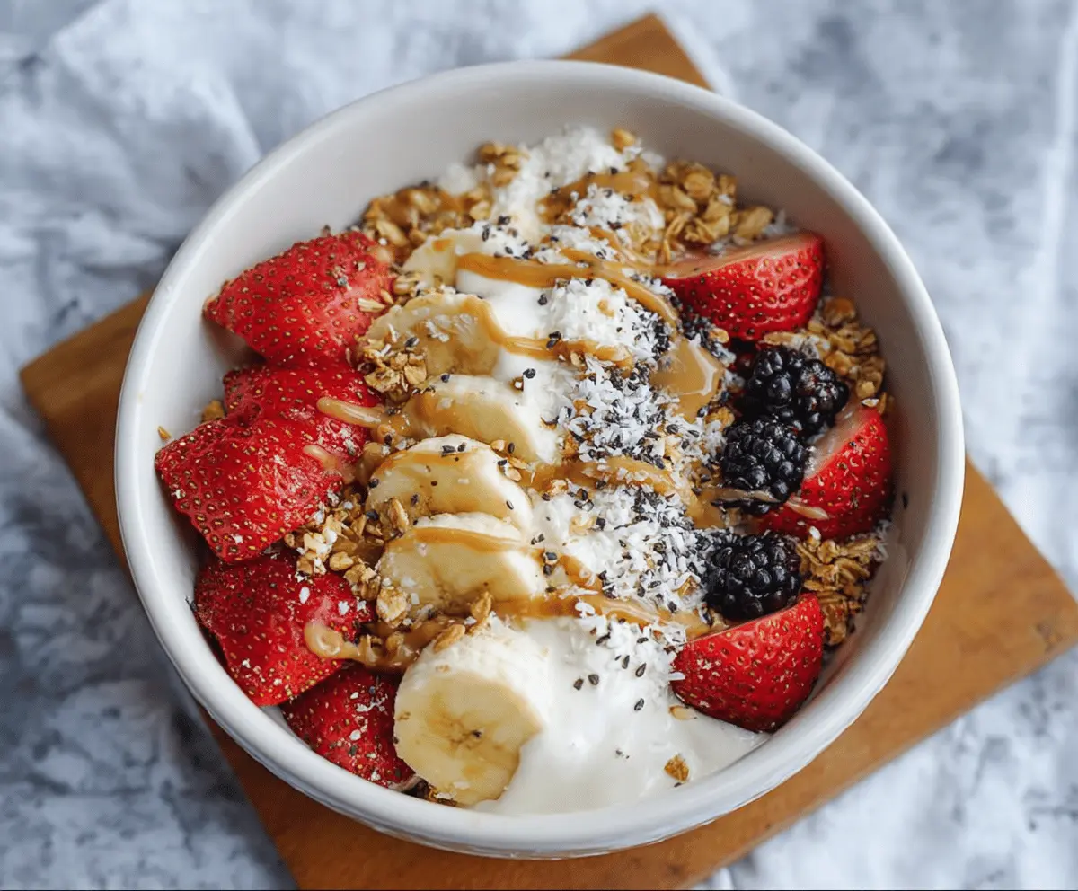 Greek Yogurt: It’s the star of the bowl! Greek yogurt is thick and high in protein. If you’re lactose intolerant, try a lactose-free Greek yogurt or a plant-based option like coconut or almond yogurt, though you’ll lose some protein.