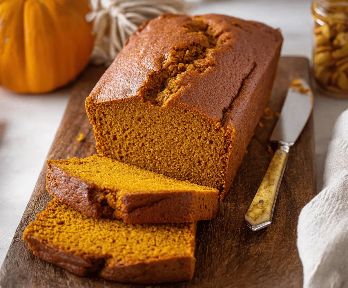 Enjoy a moist, warmly spiced pumpkin bread that’s perfect for fall! Top it with butter or cream cheese for an extra treat!