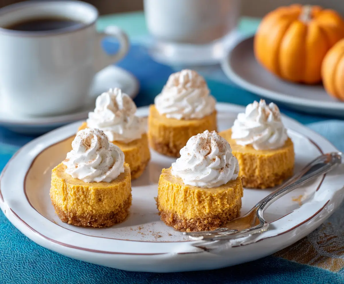 These mini pumpkin cheesecake bites are a tasty treat for fall lovers! They are smooth, creamy, and packed with pumpkin spice goodness, all in a cute little size.