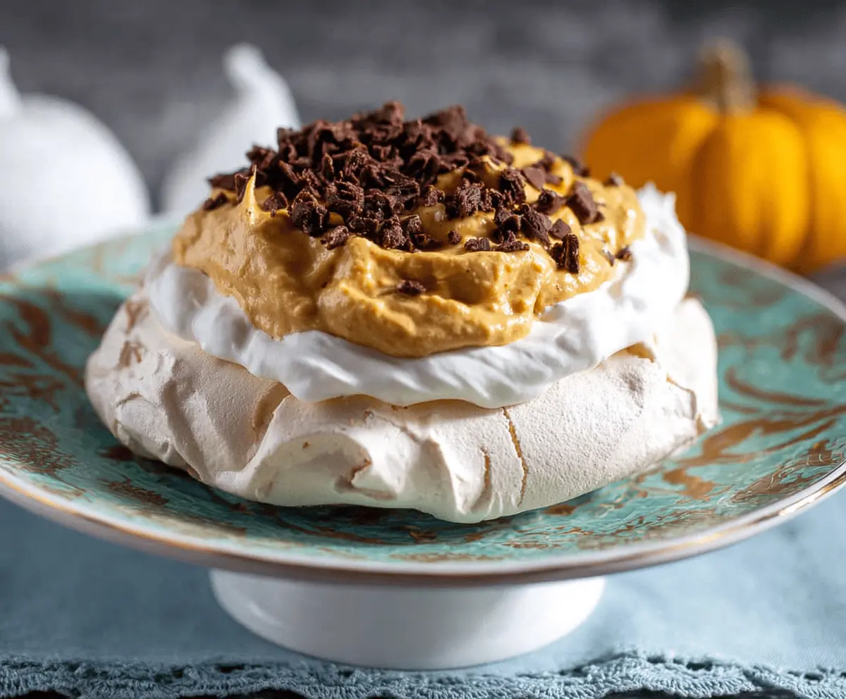 Pumpkin Pavlova is a lovely treat with a crunchy outer shell and soft, meringue center. Topped with whipped cream and smooth pumpkin filling, it’s perfect for fall gatherings!