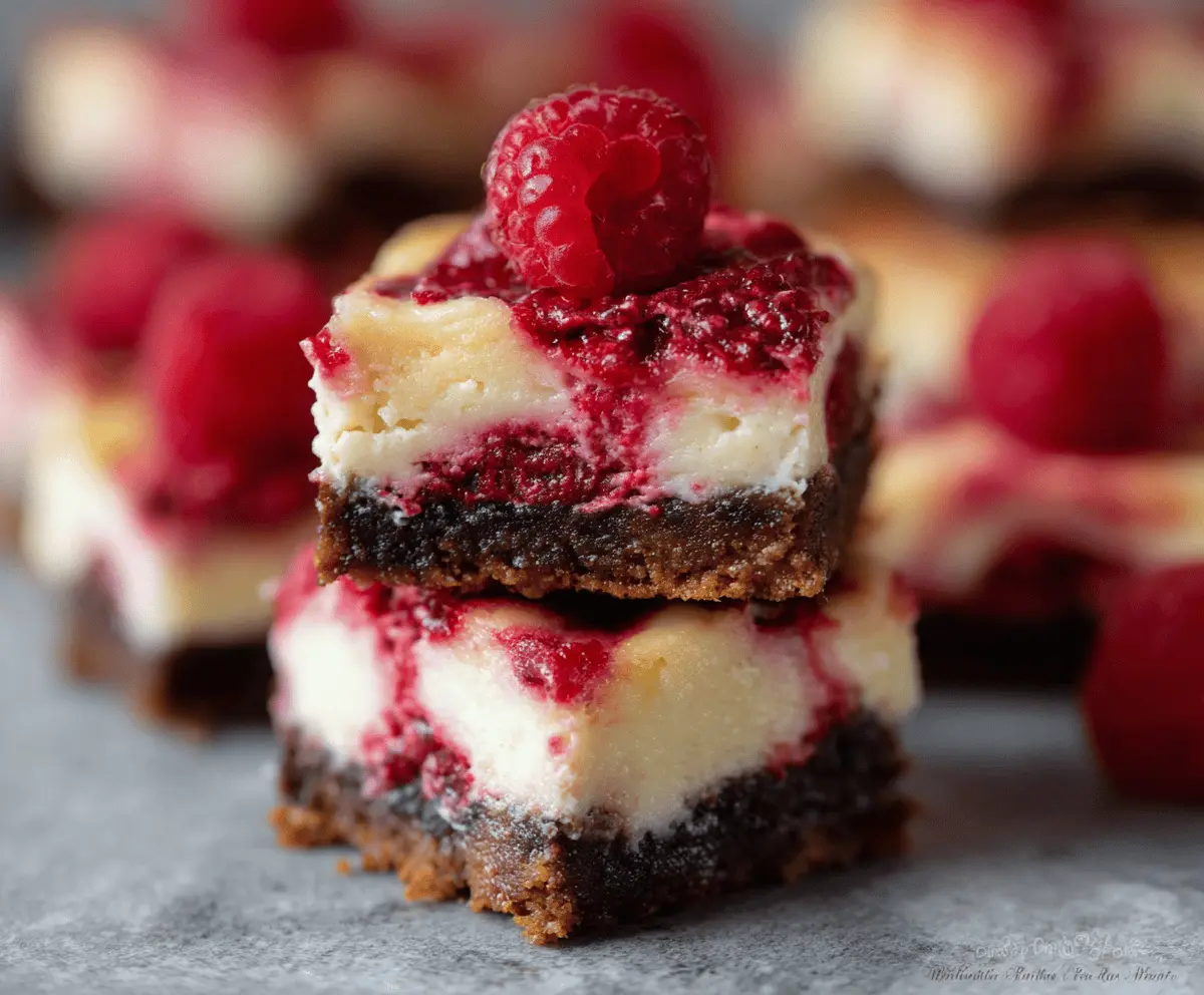After cooling, pop the bars into the refrigerator for at least 3 hours to let them set up nicely. Once they’re chilled, cut them into bars, and if you like, garnish each piece with an extra fresh raspberry. Serve and enjoy your delightful raspberry cheesecake bars!