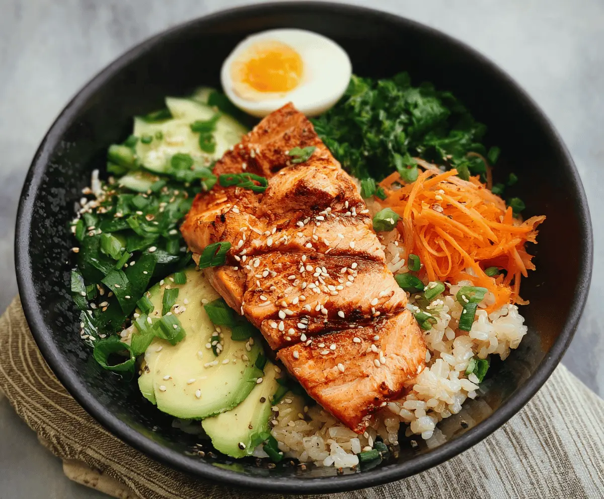 I love how easy it is to whip up! Just cook the rice, grill the salmon, and toss in your favorite veggies. Perfect for lunch or dinner when you’re feeling hungry! 🍣