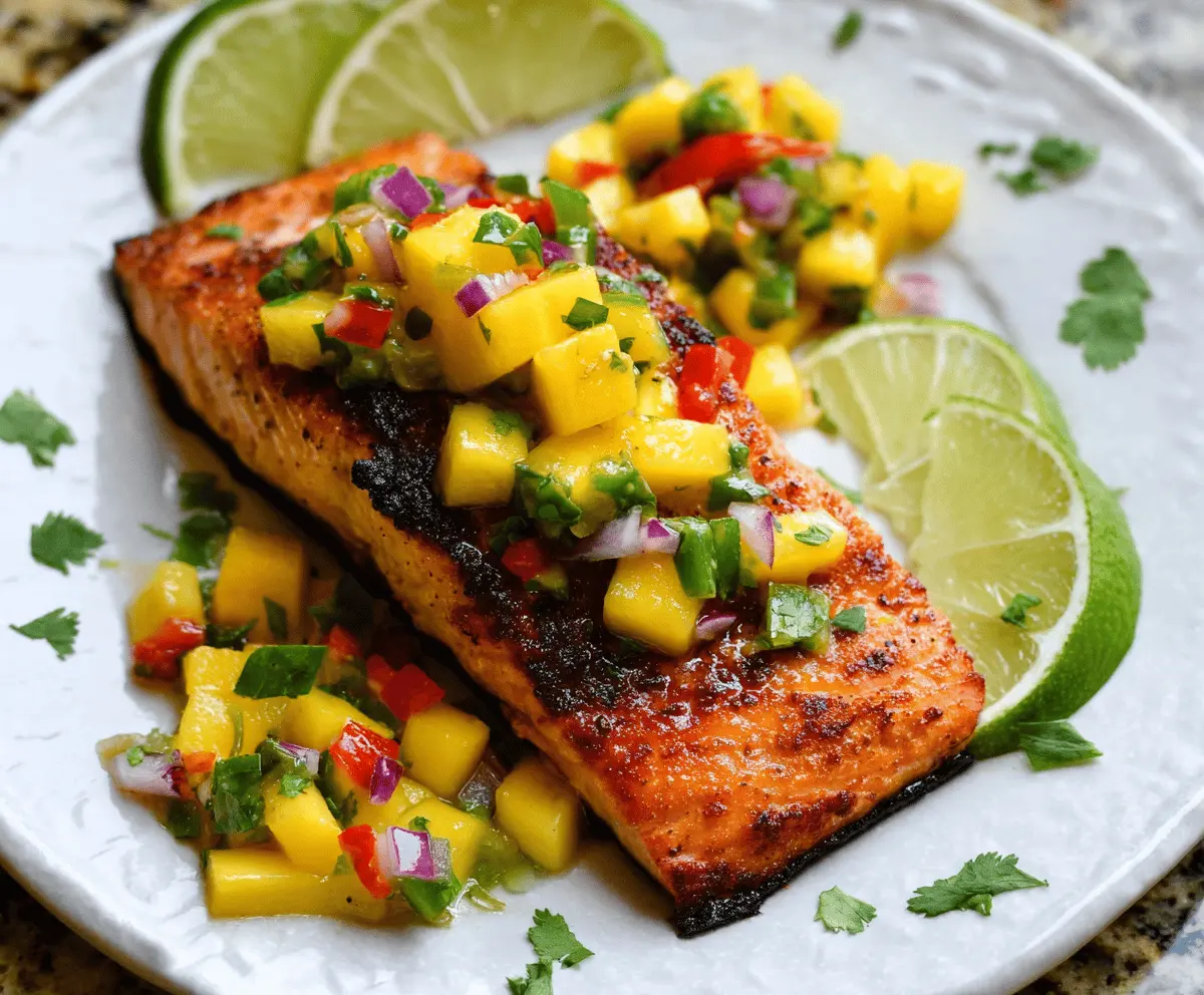 This vibrant, flavorful dish combines the rich taste of salmon with the bright, fresh zing of mango salsa. It’s sure to impress your family or guests!